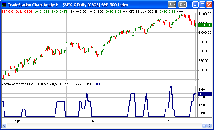 As long-time readers may recall, I don’t normally view CBI readings below 5 as any kind of warning sign. It’s not until readings reach 10 or more that they become highly indicative of an upcoming oversold bounce. We haven’t seen a reading above 4 in almost 8 months now. Even the current selloff has only seen the number move up to 3. It also appears unlikely to move substantially higher in the very near term. While other breadth readings like the McClellan Oscillator have been reaching extreme levels, the CBI requires more intense selling among individual issues – not just a broad decline. I’ll discuss the CBI again when more significant readings arrive.
